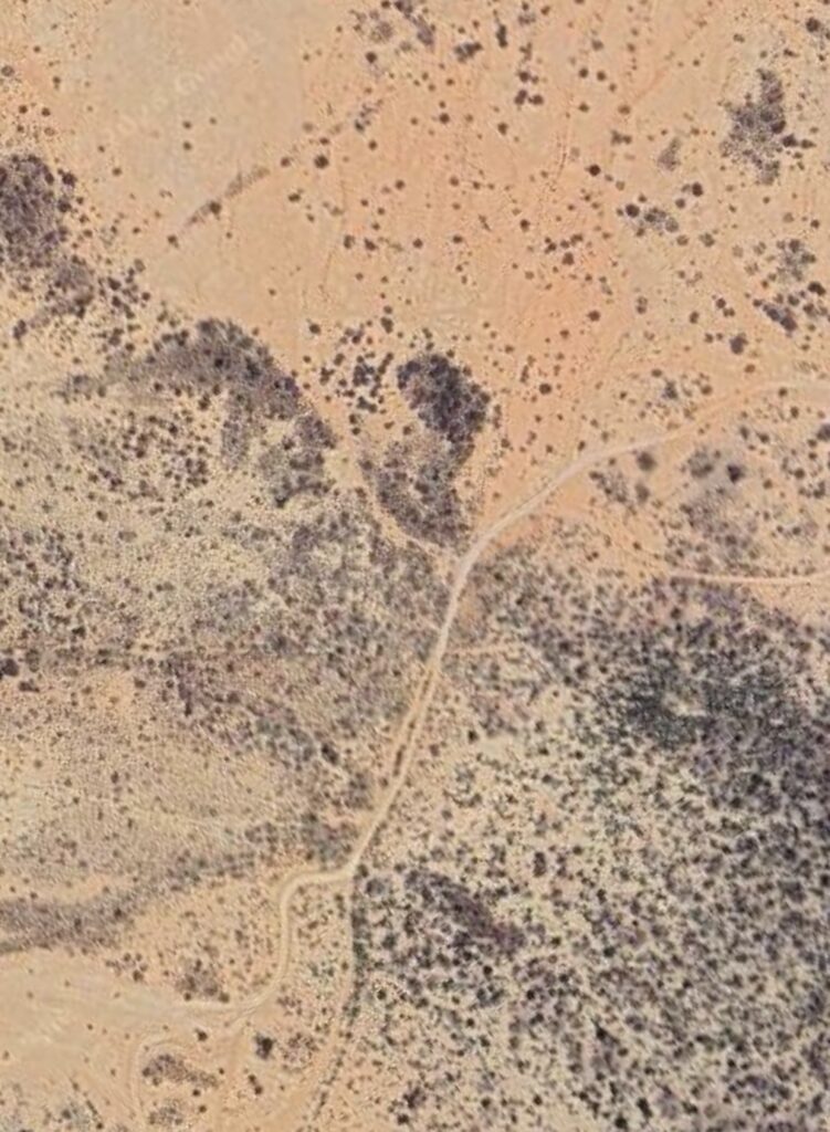 Kelafoから北へおよそ10kmの地点の航空写真。自生地の過酷な環境が伺える。